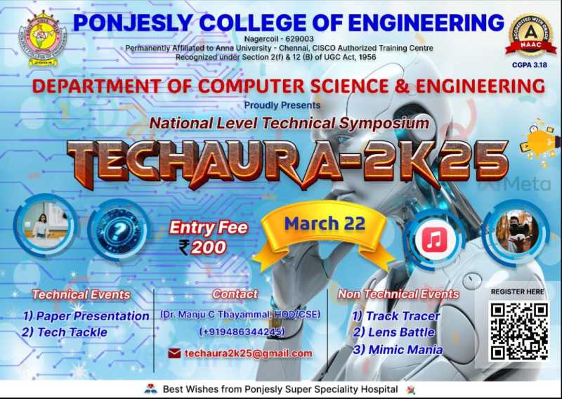 Upcoming Event Latest News: Viva Voce of the Scholar Mr. Suryaraj CK is scheduled on 08-12-2025 at the department of ECE.